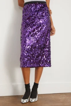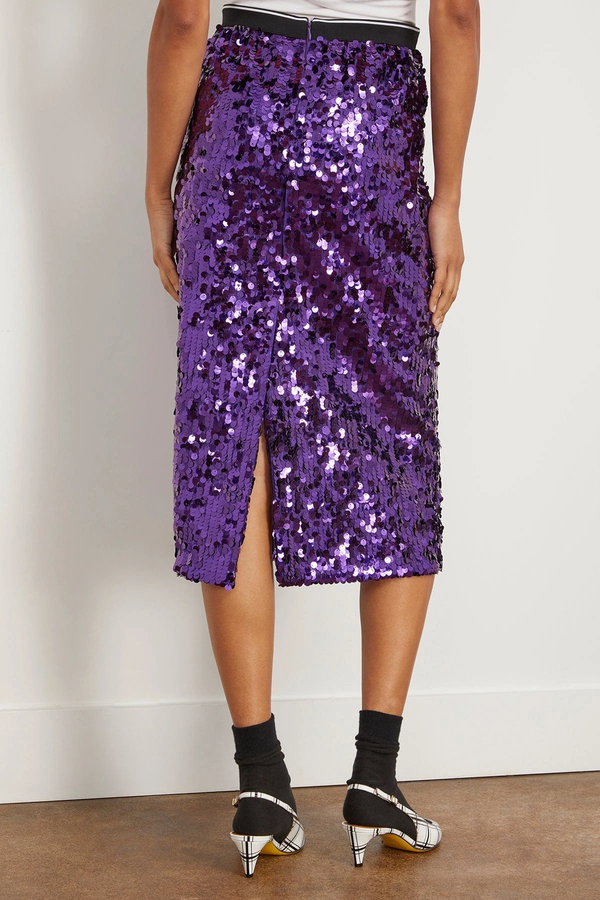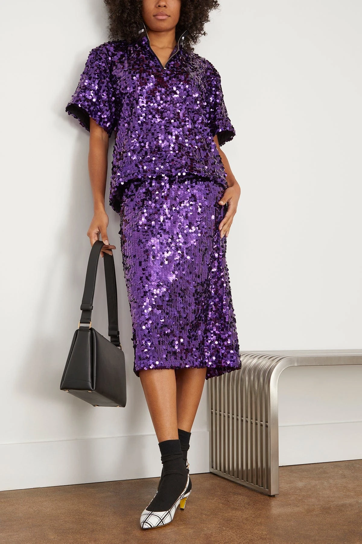 The Plan C Skirt in Aubergine will be a standout piece in your wardrobe. This pencil skirt is crafted in allover sequins with a straight silhouette. Wear yours with the matching top and heels.