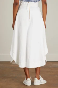 The Odeeh Skirt in Chalk will be a staple in your summer wardrobe. This denim midi skirt features a relaxed fit with a curved hemline and front patch pockets. Wear yours with a blouse tucked in.
