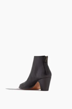 A short bootie version of our favorite Lahara Boot, in soft Nappa leather. Features a softly pointed toe, mid heel and a hint of cowboy styling.