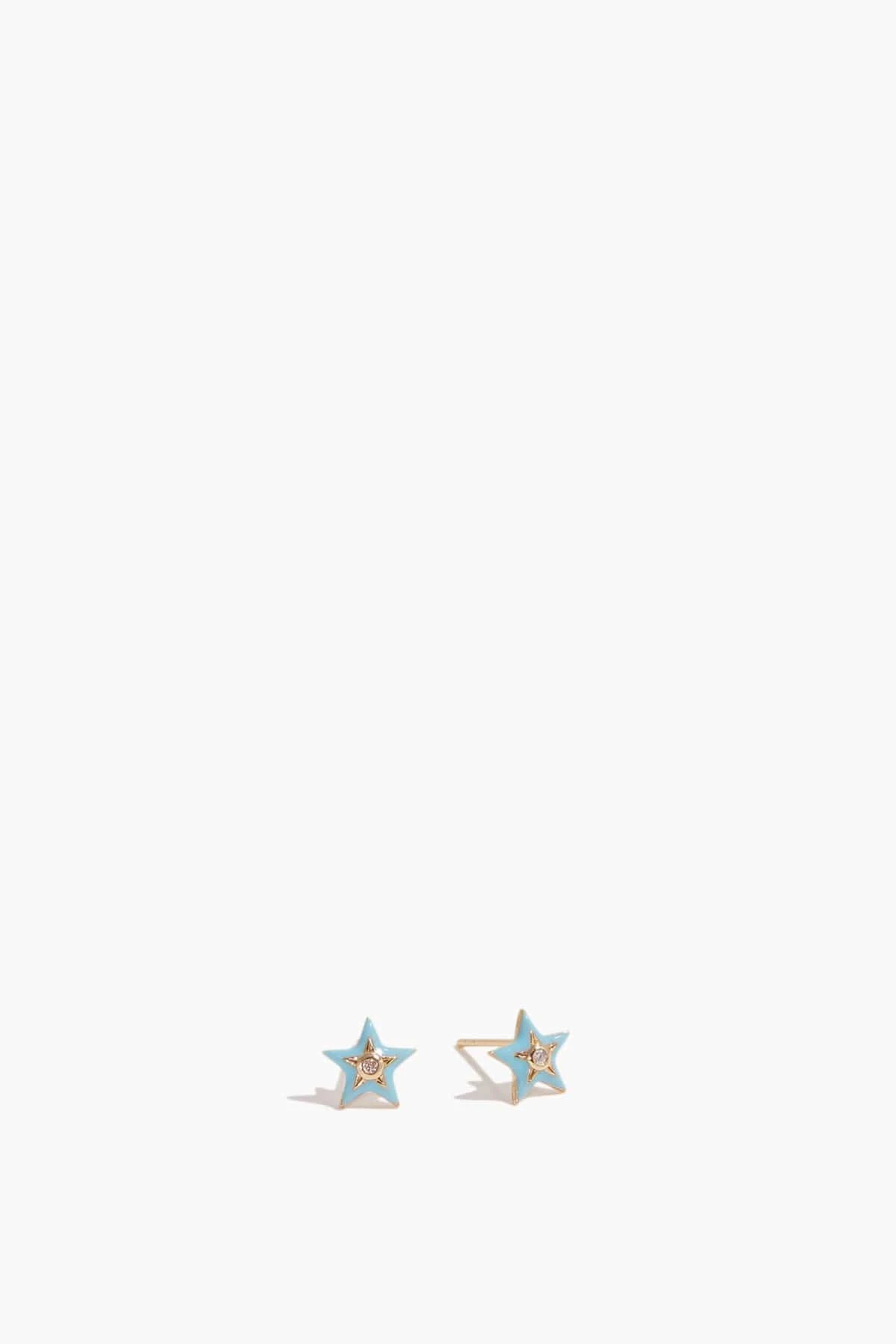 The Theodosia Star Studs in Turquoise Enamel are a playful addition to your jewelry collection. These stud earrings feature turquoise enamel stars in 14k gold.