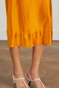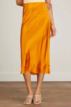 Your favorite silk skirt is back in a bold new hue. This Lee Mathews Stella Skirt features a midi length and a flattering bias cut. Wear yours with the matching top and sandals.