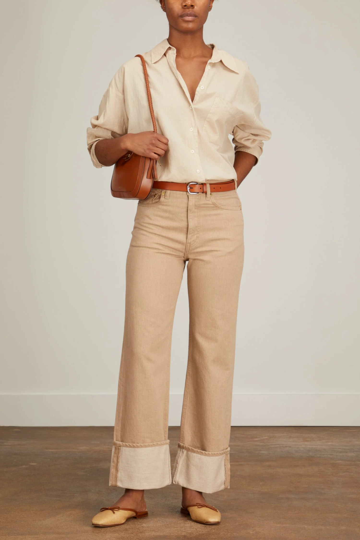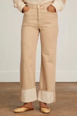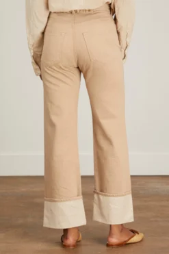 The Tu es mon Tresor The Carnelian Jean are like nothing else in your wardrobe. These jeans feature a relaxed fit with a boyfriend leg and a large ankle cuff. Wear yours with a t-shirt and sandals.