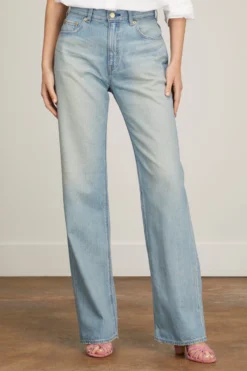 The Tu es mon Tresor The Tanzanite Jean will be a staple in your wardrobe. These jeans feature a wide, relaxed leg with a classic high rise and vintage wash. Wear yours with a t-shirt tucked in.