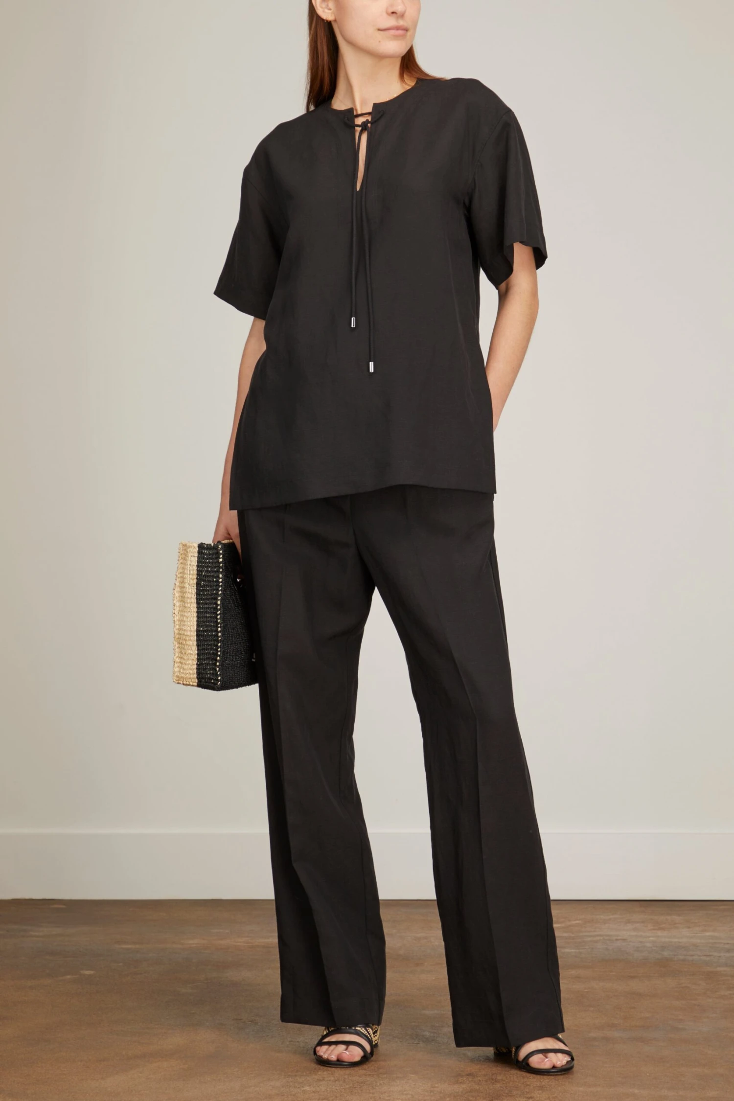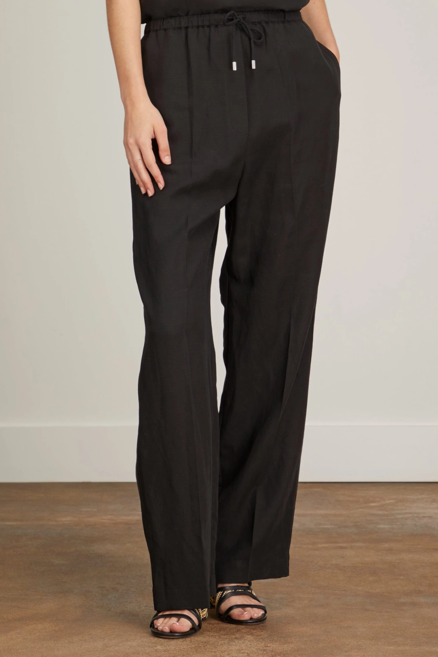The Toteme Press Creased Drawstring Trousers features the relaxed fit you love from this designer. These trousers have a drawstring waistband with a front crease in a linen blend. Wear yours with a blouse tucked in.