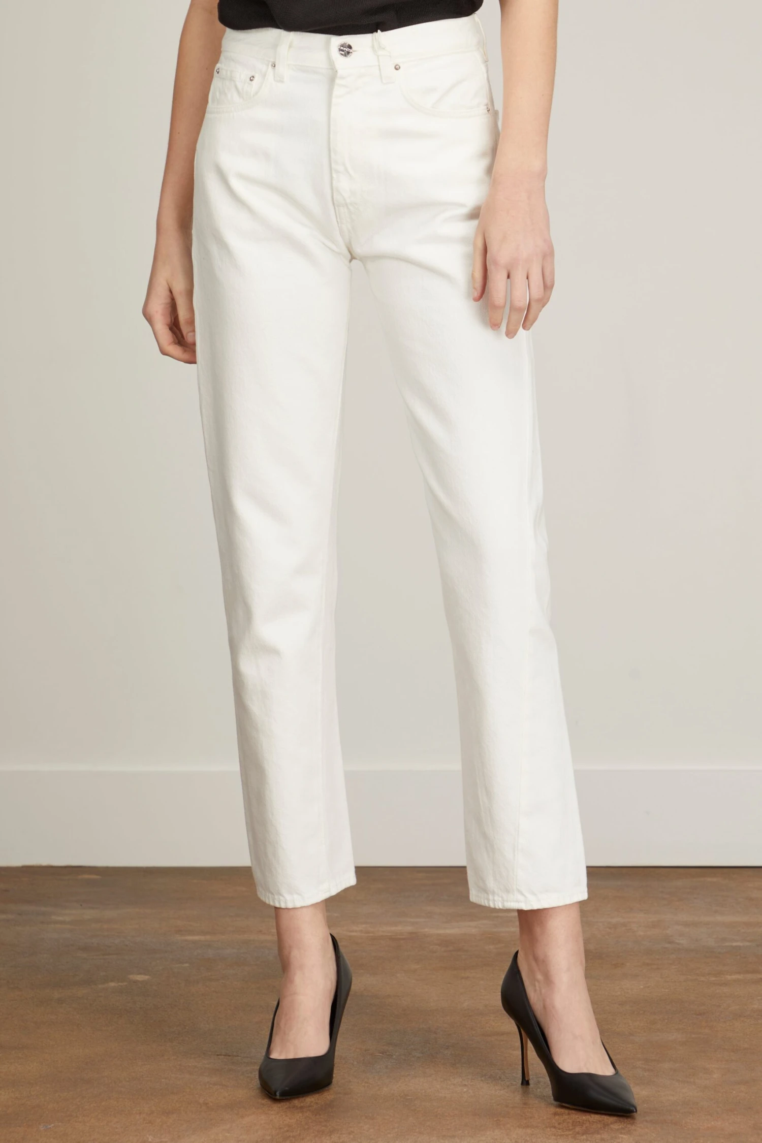 The Toteme Twisted Seam Denim will be a staple in your wardrobe. These jeans feature twisted side seems with a cropped leg in rigid organic cotton. Wear yours with a sweater and flats.