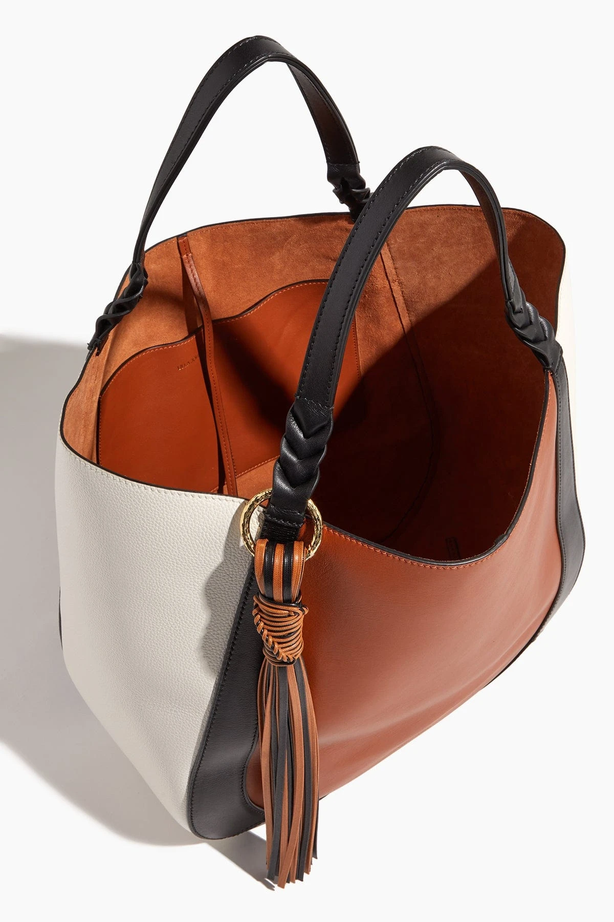 Your favorite tote bag is back. The Ulla Johnson Albers Tote features a roomy interior with a mixed leather and suede exterior and signature tassel.