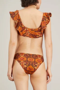 The Ulla Johnson Azores Bikini Top is crafted in a bold geometric print. You’ll love the feminine ruffled neckline of this bikini top. Wear yours with the matching bikini bottoms.