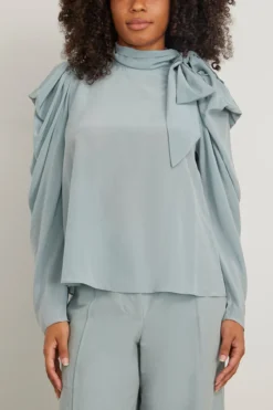 The Ulla Johnson Brea Blouse in Agave is made from our much-loved silk crepe de chine in a stunning slate-blue. This blouse has a loose silhouette framed by long voluminous sleeves and is finished with lovely scarf-like neckties. We love it paired with a maxi skirt and boots.