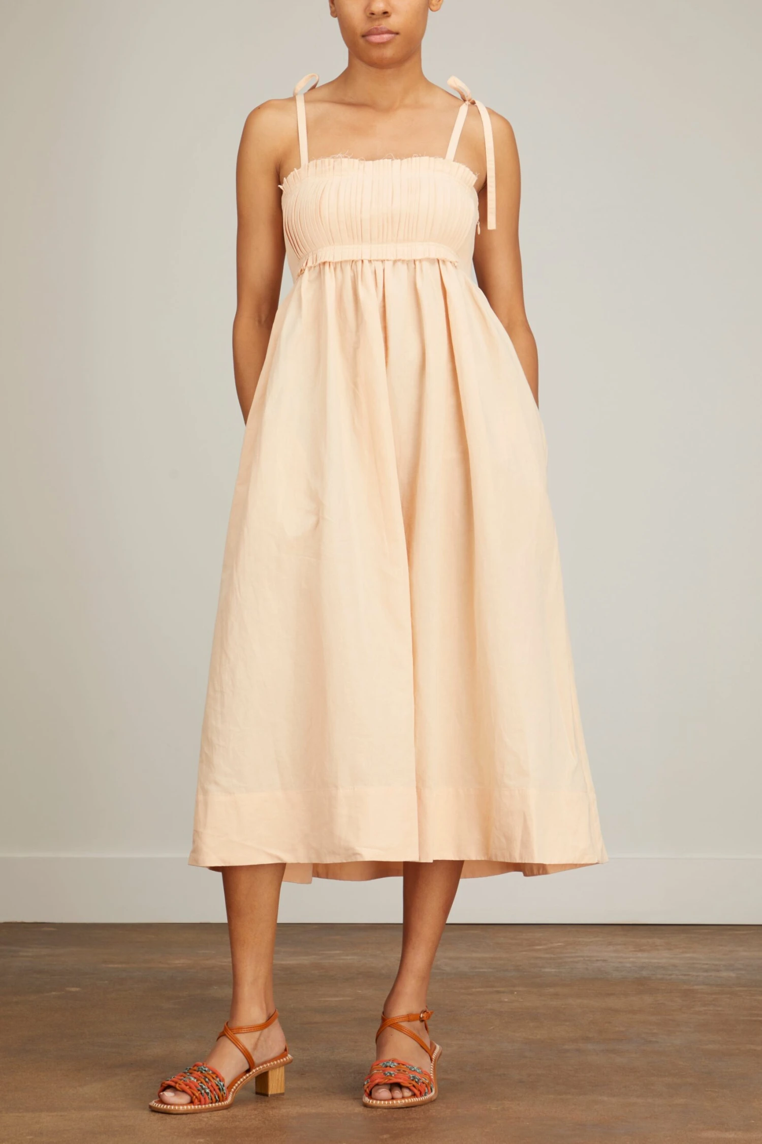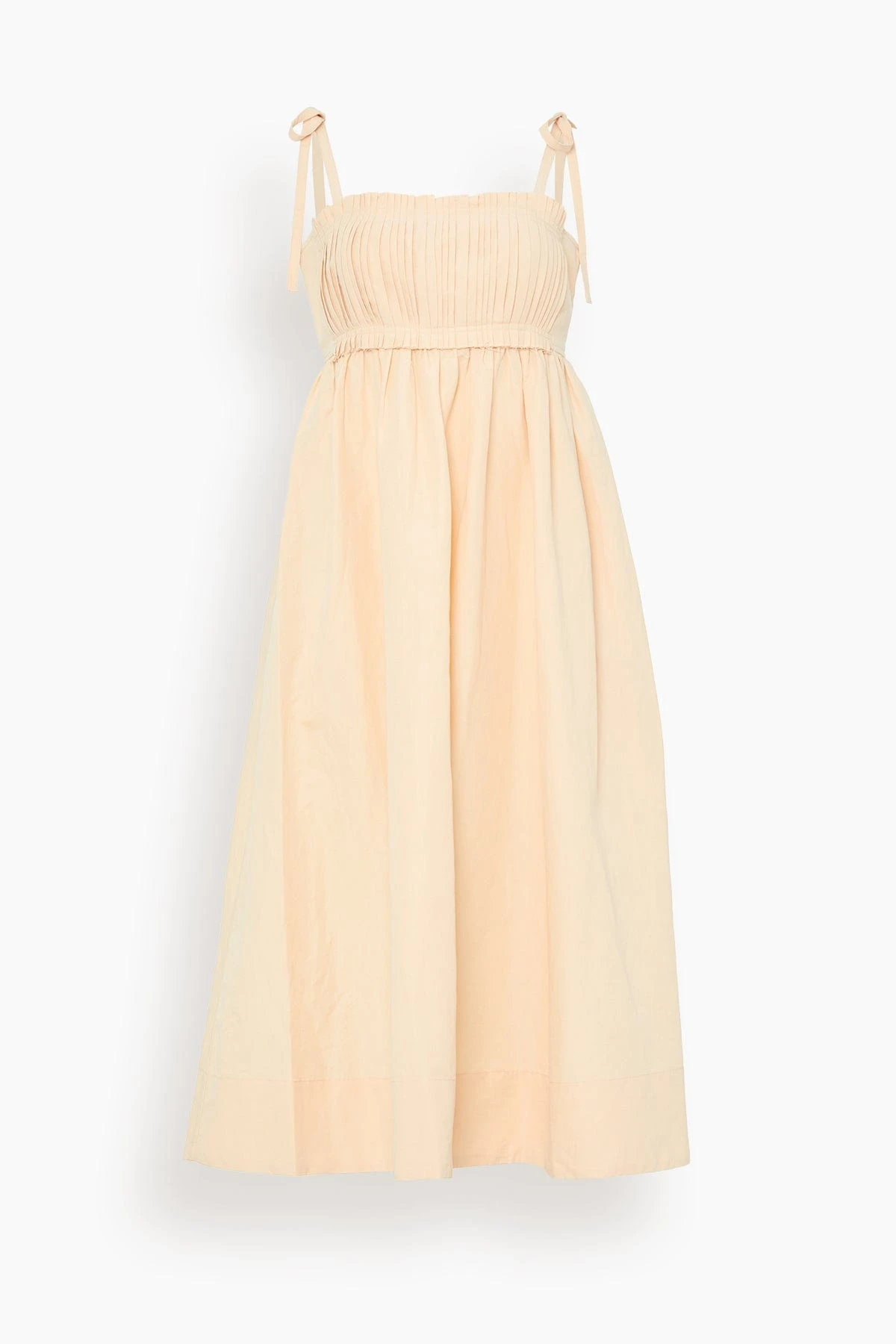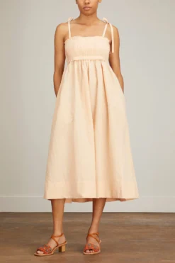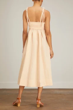 the Ulla Johnson Laetitia Dress will be a staple in your spring and summer wardrobe. This linen blend dress features a flattering empire waistline with a plated bandeau and tie shoulder straps. Wear yours with sandals and a tote bag.