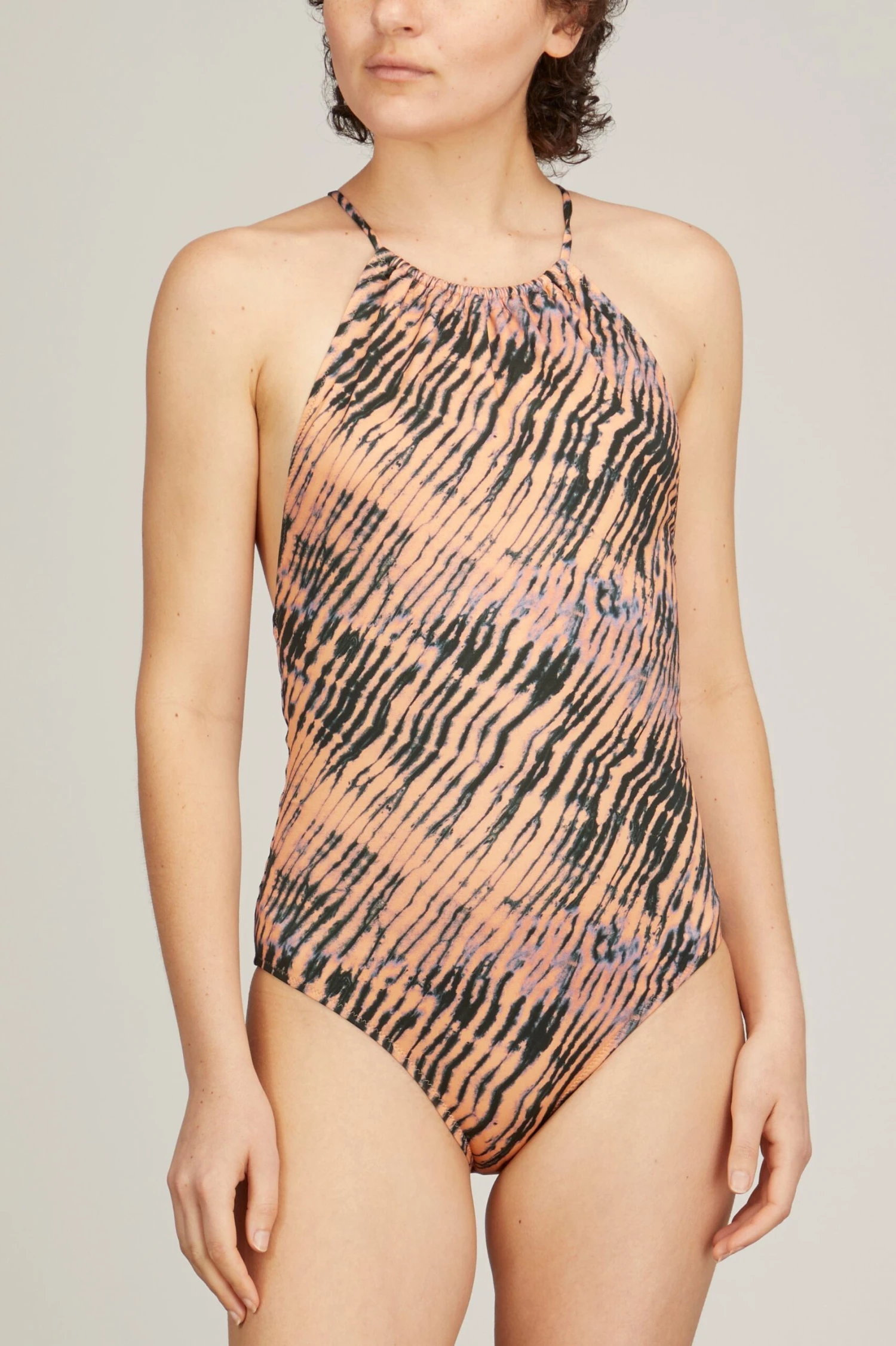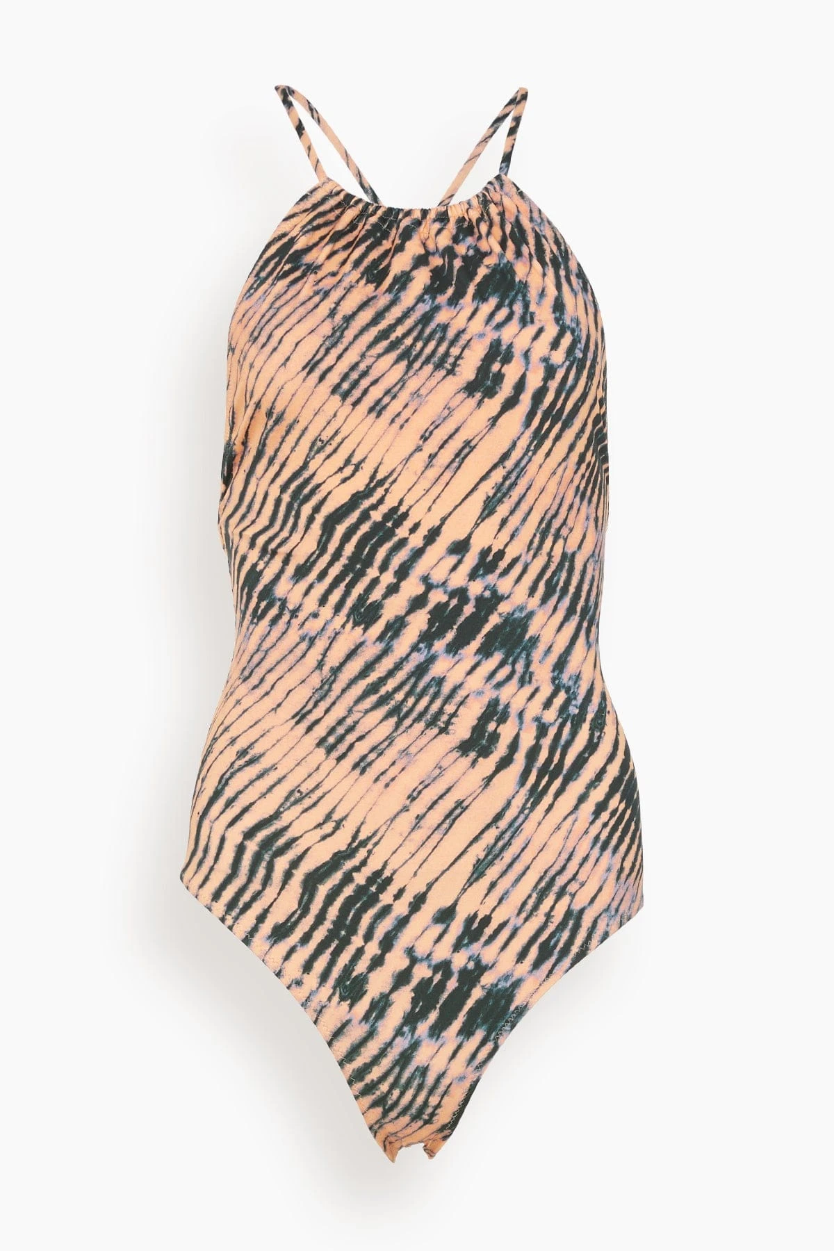 The Ulla Johnson Odelia Maillot is crafted in a bold graphic print. You’ll love the high neckline of this one piece swimsuit with crossback straps.