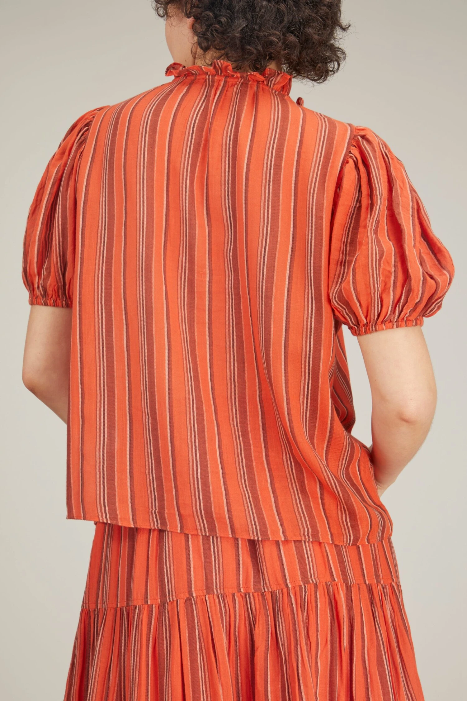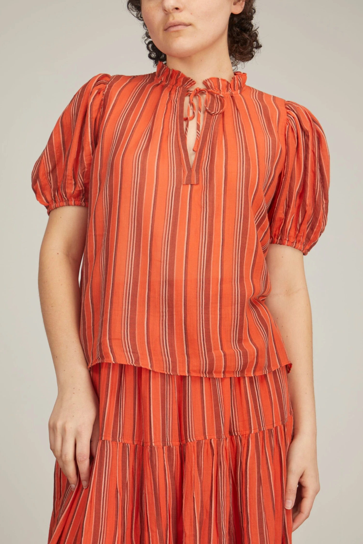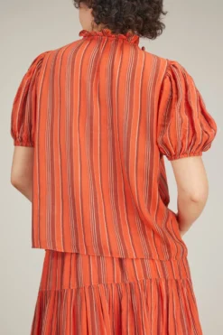 The Ulla Johnson Oona Top is crafted in their must-have loomed yarn. You’ll love the puffed sleeves and tie front detail of this top for everyday wear. We love it paired with the matching midi skirt.