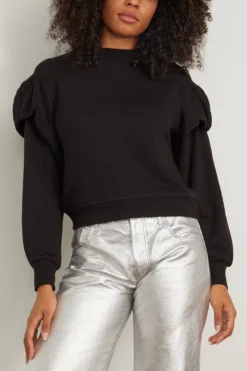 Equally elegant and effortless, the Ulla Johnson Pilar Pullover in Noir is crafted from our ultra-soft fleece made with bamboo and organic cotton and is a classic black hue. This long-sleeve crewneck style features statement puff sleeves and is the perfect companion toUlla Johnson’s handmade denim.