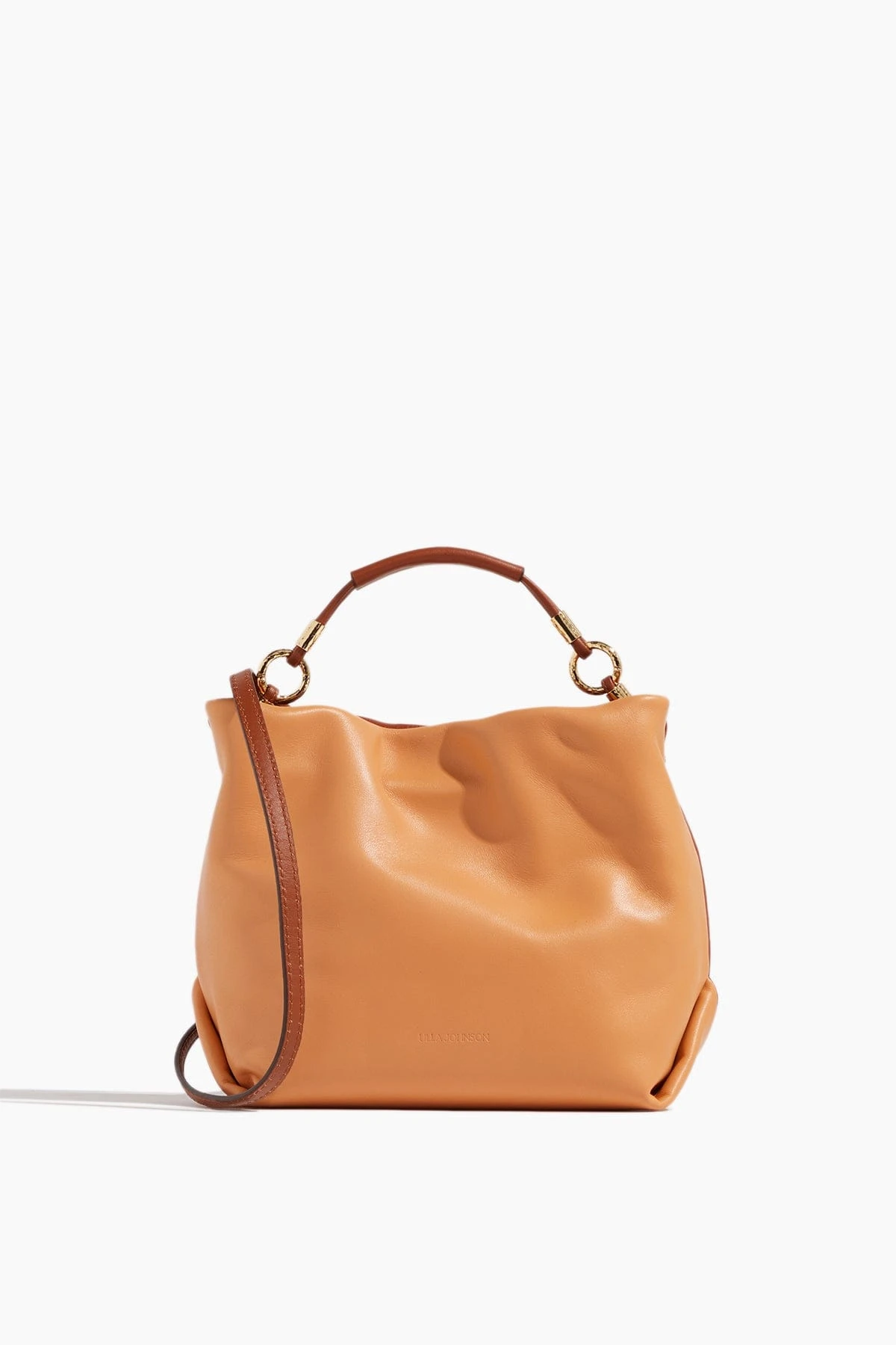 The Ulla Johnson Remy Mini Handbag is a great addition to your wardrobe. This handbag features a structural silhouette with a top handle in peach leather.