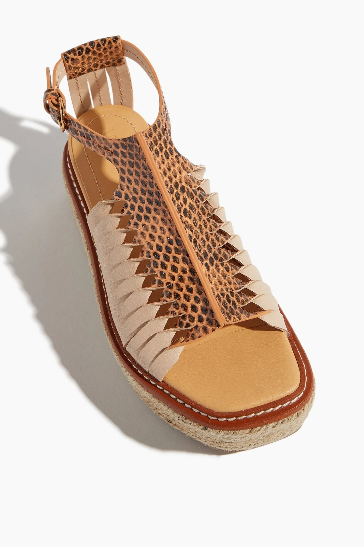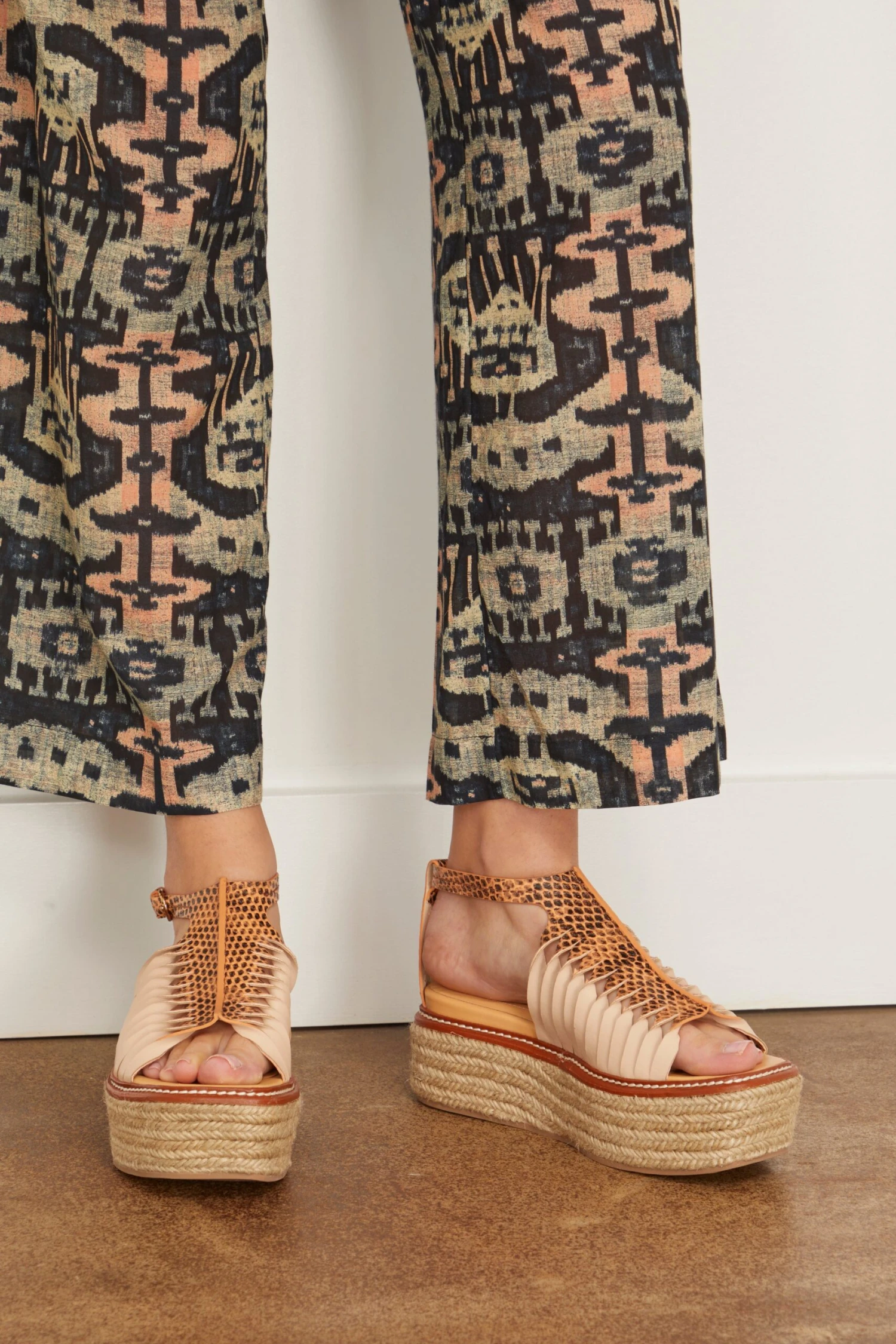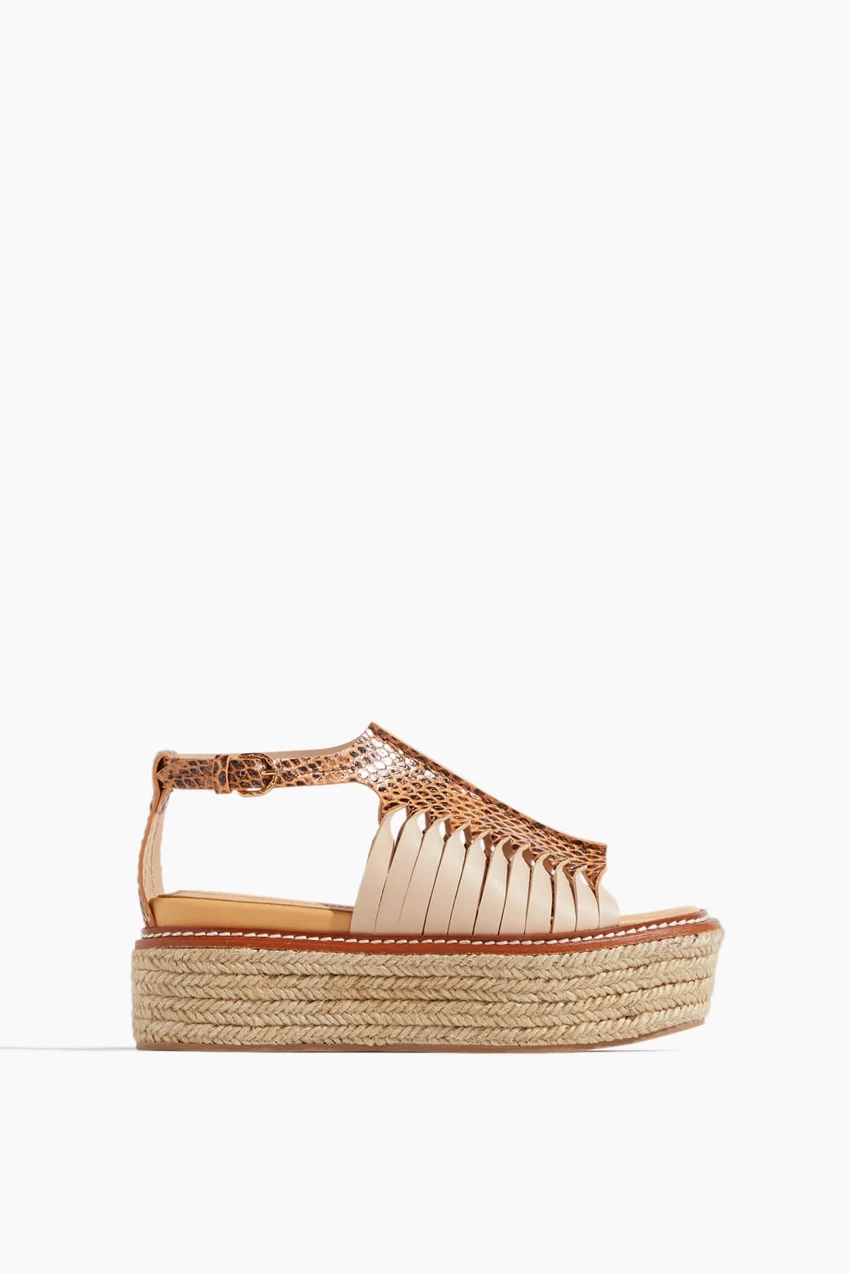 The UIla Johnson Valencia Twisted Contrast Flatform walked their Spring 23 Runway. These sandals feature a raffia platform sole with contrasting leather upper.
