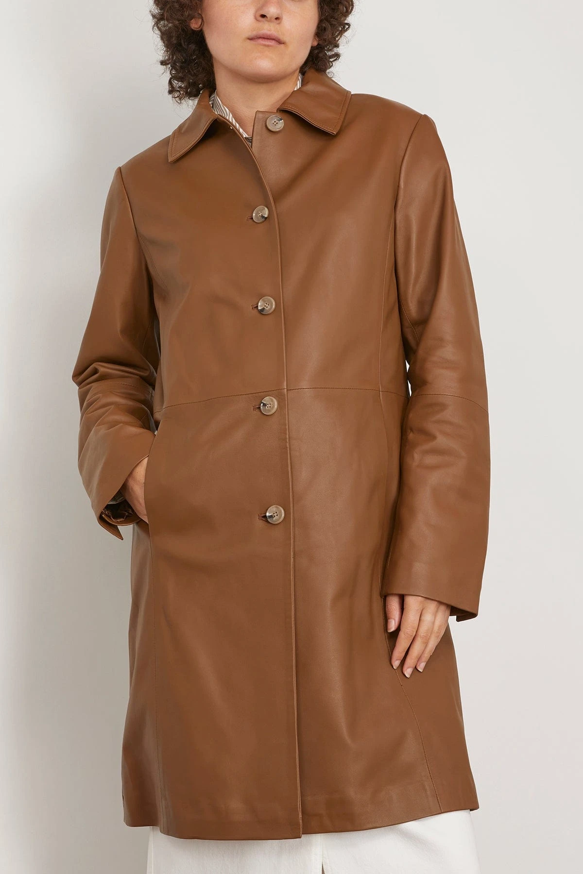 The Loulou Studio Uvon Long Leather Jacket in Brown will be a standout pice in your fall and winter wardrobe. This leather jacket is a long length and is 100% lamb leather.