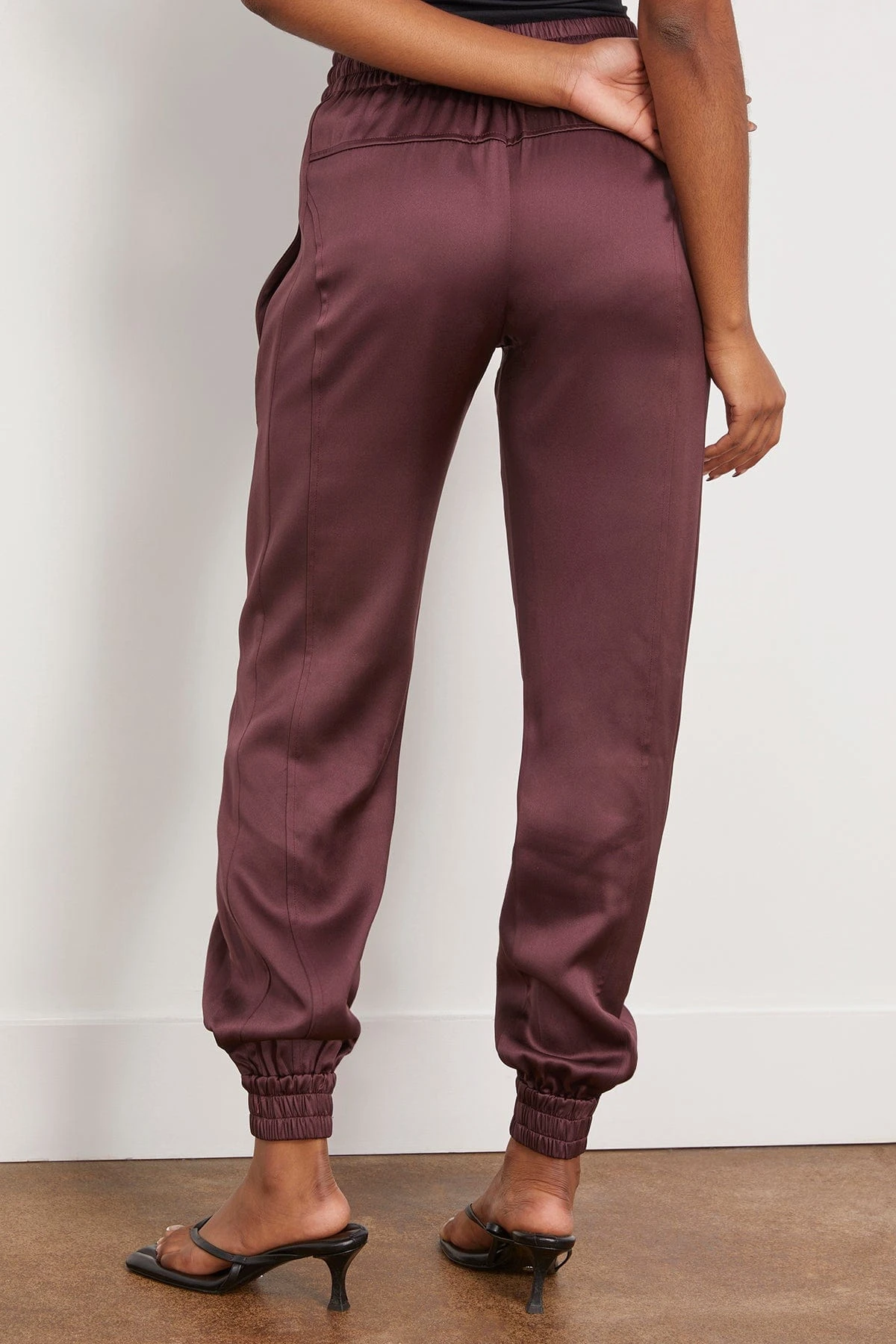 The Sa Su Phi Valentina Jogger in Bordeaux is a classic jogger style, yet elevated being composed in silk. Wear it with an oversized silk shirt with heels for an evening look or with trainers for a more relaxed everyday look.