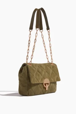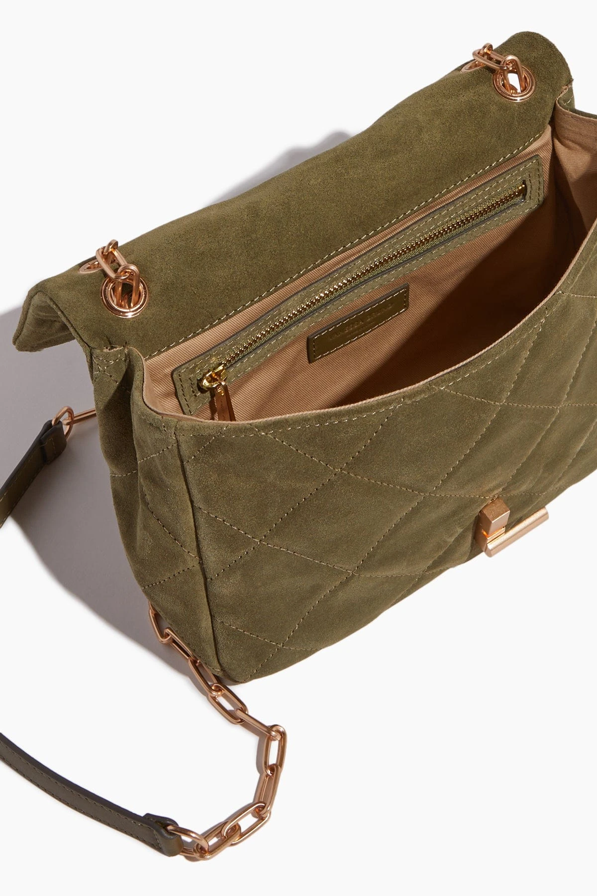 The Vanessa Bruno Moon Crossbody Bag is a signature piece for a reason. This bag features a chain crossbody strap with a quilted suede exterior and front flap closure.