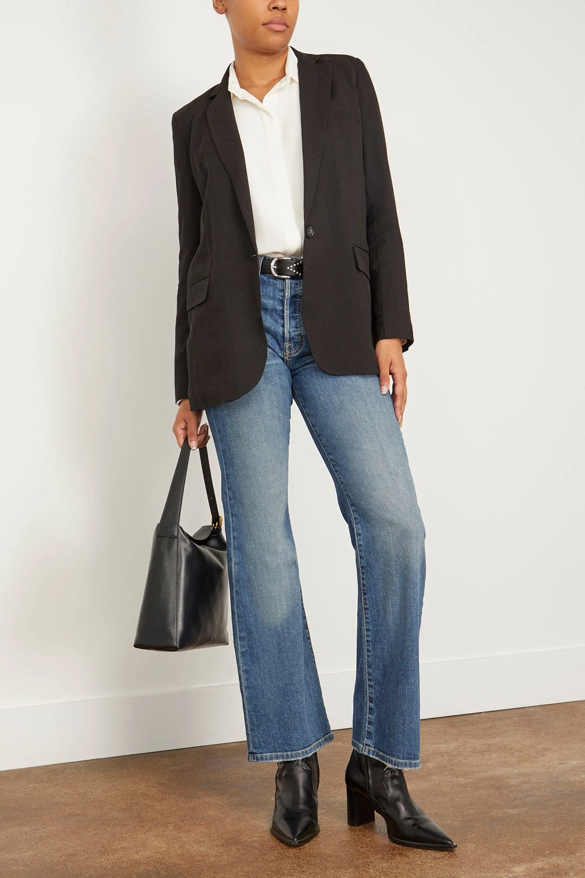 The Vanessa Bruno Tilia Blazer will quickly become a staple in your wardrobe. This blazer features a straight silhouette with a single button closure in a lightweight linen and viscose blend. Wear yours over a t-shirt with jeans.