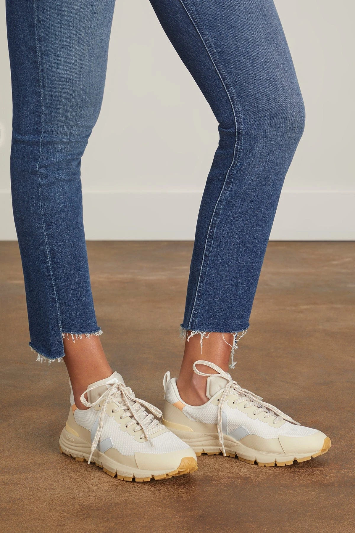 The Veja Dekkan Sneakers are a new style from your favorite designer. These sneakers have an athletic look with their signature V logo.