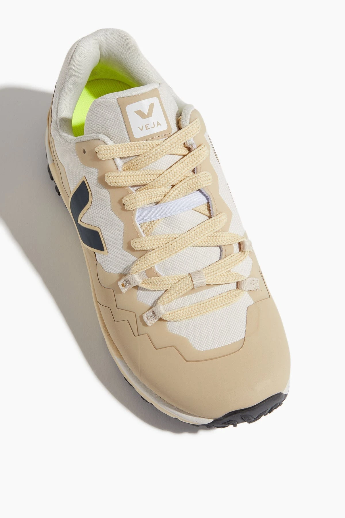 The Veja Fitz Roy Sneaker are crafted in a recycled polyester. These sneakers feature their signature V logo with Patagonia inspired peaks across the sides.