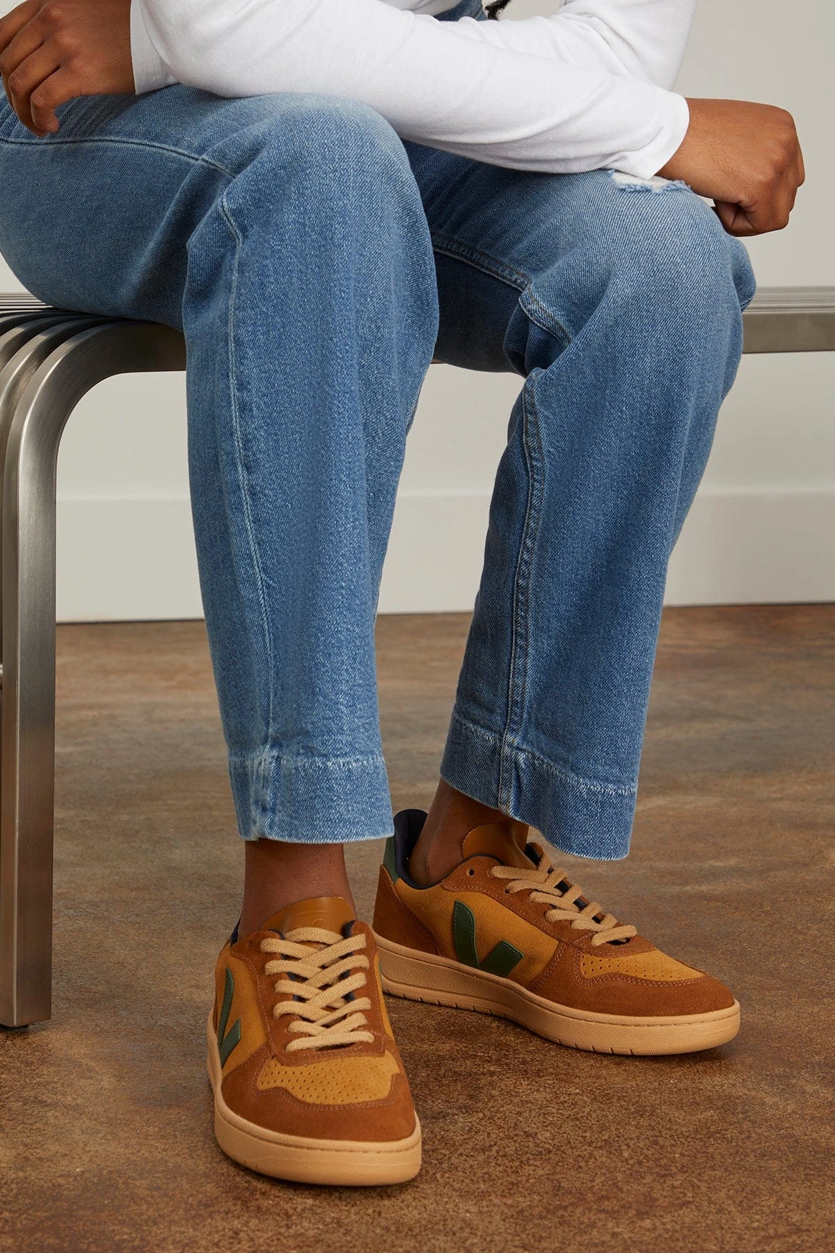 The Veja V-10 Sneaker in Camel Cyprus Multico is a classic suede sneaker featuring tonal brown shades. The suede is made from the underside of bovine leather previously brushed to make it softer and more flexible. It comes from farms in the south of Brazil (Rio Grande do Sul). It is tanned in Brazil, without using any hazardous or prohibited chemicals. VEJA uses conventional dyes that comply with regulations. Special attention is paid to water usage during the tanning process. The suede is also coated with water-repellent oils without PFCs (chemical compounds) to protect the sneakers from light rain. The suede is certified Silver by the Leather Working Group.
