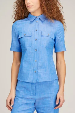 Be the first to review “Vesper Stretch Denim Poplin Shirt In Bright Indigo” Cancel reply