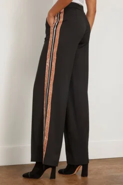 The Callas Milano Viva Wide Leg Trouser with Tuxedo Stripe in Black features a contrasting side stripe on each leg. This style hits at a mid-rise with a wide-leg silhouette. We love pairing this a chic button-down and heels for a sophisticated look.