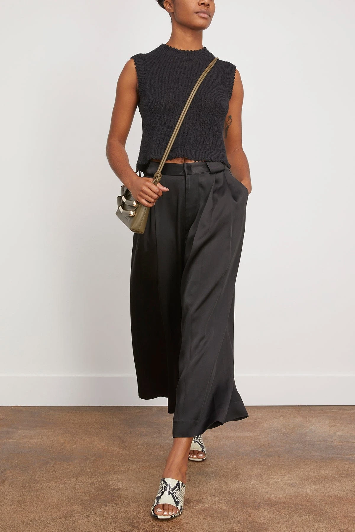 The Rachel Comey Wolcott Pant is a fresh take on their classic silhouette. New for Resort 2024, it features satin back crepe fabric, pleated details, and wide belt loops. We love this style worn with a fitted knit top and loafers.